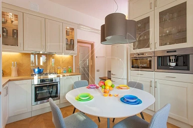 Основной упор делается на функциональность кухонной мебели. Системы хранения организуются таким образом, чтобы в них могло вместиться все необходимое – бытовая техника, посуда, аксессуары и различные приспособления.