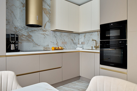 Кухня как «тихий ассистент»: матовый кашемир и золотой пунктир