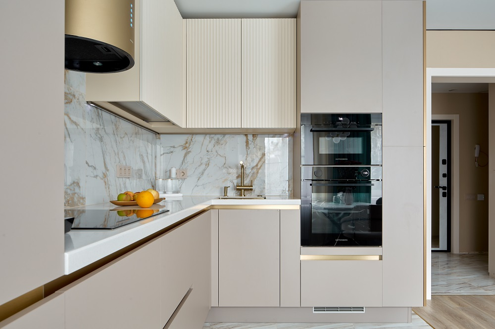 Кухня как «тихий ассистент»: матовый кашемир и золотой пунктир