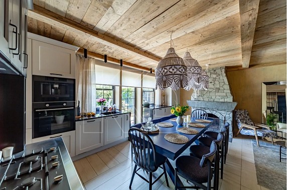 В интерьере кухни с такой мебелью существенную роль, помимо самого гарнитура, играет освещение, кухонная техника и аксессуары. Они должны сочетаться между собой и создавать единое гармоничное пространство.
