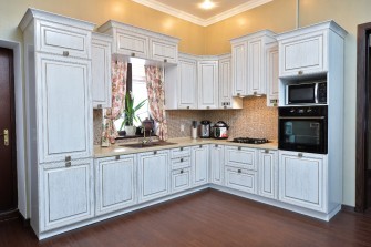 Это дерево великолепно смотрится как в своем натуральном цвете, так и при окрашивании в различные оттенки: белый, бежевый, черный, сиреневый. А если украсить фасады золотой или серебристой патиной, гарнитур приобретет по-настоящему антикварный вид. Конечно, кухня из массива, цена на которую не входит в разряд бюджетных, требует ощутимых затрат. Однако при должном уходе дубовый гарнитур способен служить хозяевам несколько десятков лет, что вполне оправдывает стоимость такой покупки.