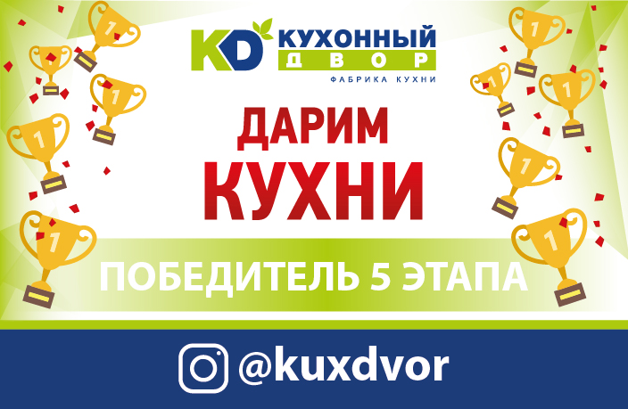 Завершился пятый этап акции «Дарим Кухни»! На этой неделе скидка на мебель в размере 100 000 рублей досталась Воробьевой Юлии!
